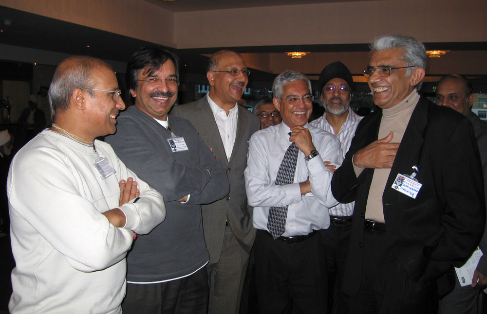 Our esteemed teacher and friend, Mr. Saleh Mamon, enjoying a joke with (from left) Haria, Arun Luther, Raichand Desaur, Anil Lakhani and Gurdeep Bahra.