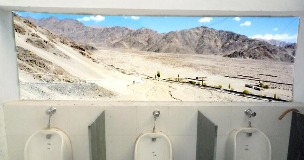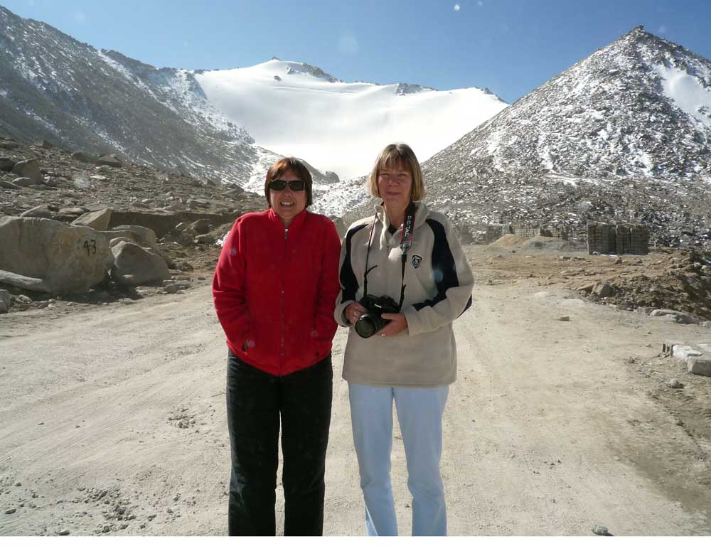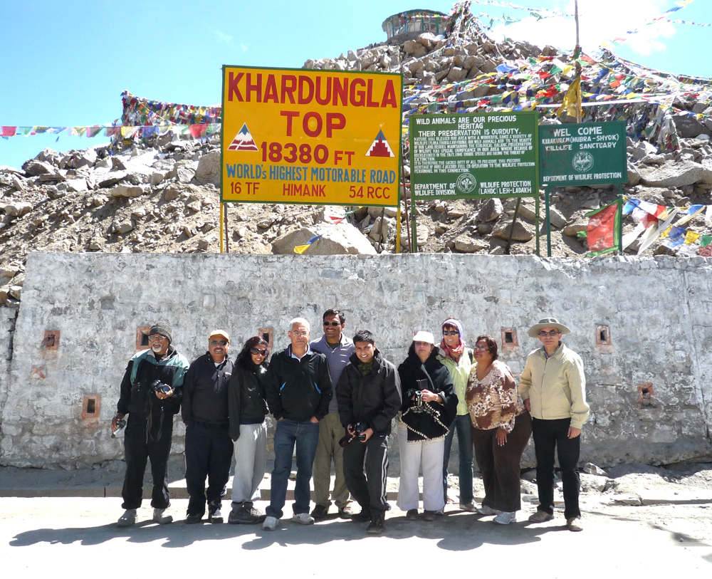 At Khardungla Pass: As the notice says, it is the world's highest motorable road. At this point we are at a higher altitude than Mt Kenya. Breathing was difficult here, as we were not acclimatised and had just driven here from Leh, 39 km to the south. However we saw two European cyclists clad in lycra who had cycled all the way from Leh. We on the other hand had a disposable oxygen cylinder and it came in very useful for the unfit one who suddenly tried sprinting. Khardungla is a military post and the soldiers provide refreshing sweet tea to travellers.