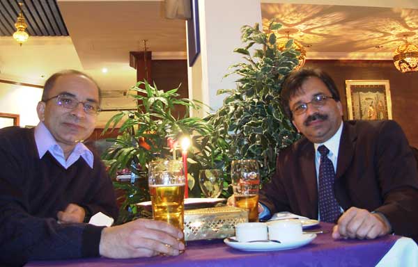 Pradeep and Arun in good spirits in Birmingham. 6feb03.