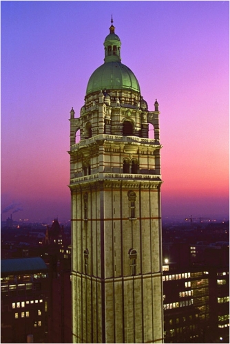 Queen's Tower at South Kensington Campus at sunset. Picture taken from the top of Electrical Engineering building