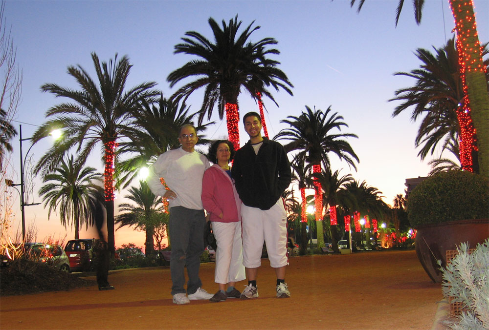 The family enjoying Christmas at Lloret del Mar, Costa Brava, Spain. December 2006